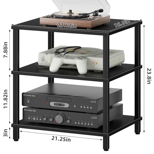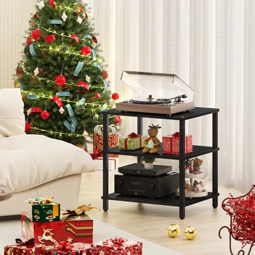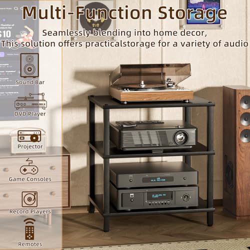 3-Tier AV Media Player Stand, Stereo Cabinet, Modern Stereo Cabine,Game Console Shelf,Wooden TV Stand,Multifunctional Entertainment Center, Suitable for Home, Conference Room, Game Studio,Black