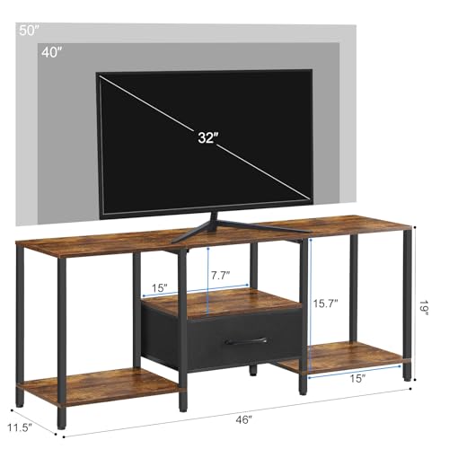 Triple Wooden Shelves + Hidden Drawer: Store game consoles, routers, and media gear on 3 sturdy wooden shelves, while the deep fabric drawer hides remotes and cables—tv table keep your space organized and clutter-free.