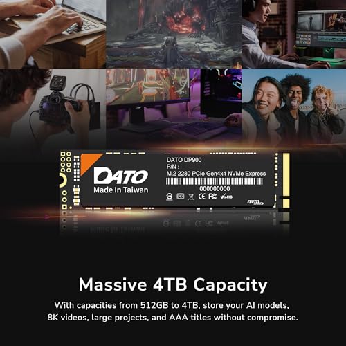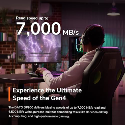 DATO 1TB M.2 SSD, M.2 2280 SSD, PCIe Gen4x4 Internal Solid State Drive for Gaming, Up to 7000/6500 MB/s, DP900 Series